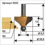 Фреза кромочная КАЛЁВОЧНАЯ Ø28,6 х 13 мм, R4,0 хвостовик 8 мм