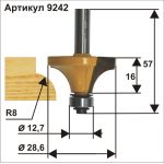 Фреза кромочная КАЛЁВОЧНАЯ Ø28,6 х 15,5 мм, R8,0 хвостовик 8 мм