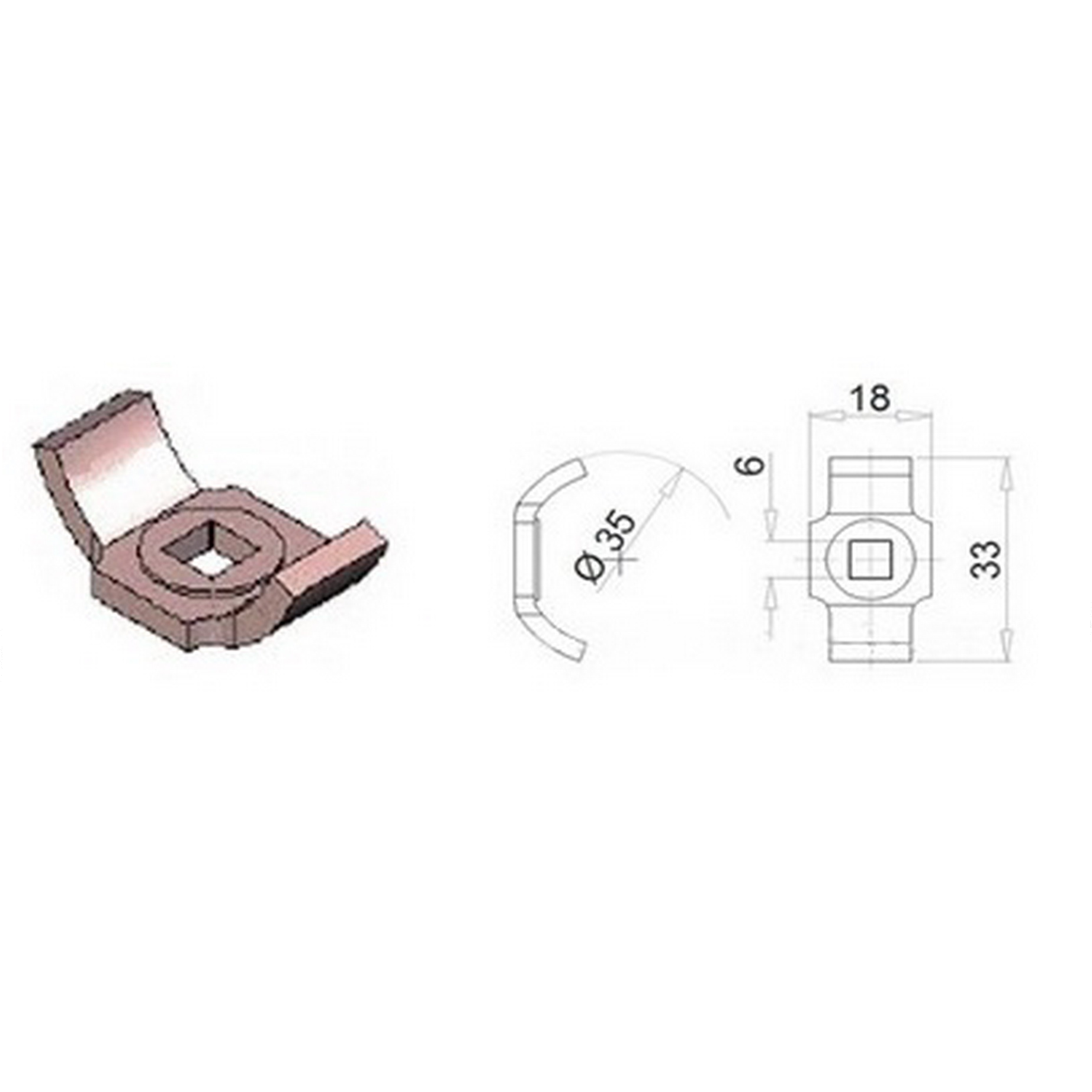 Стяжка 20х30х14 мм с квадратным отверстием 6 мм под "чашку" d 35 мм, цинк
